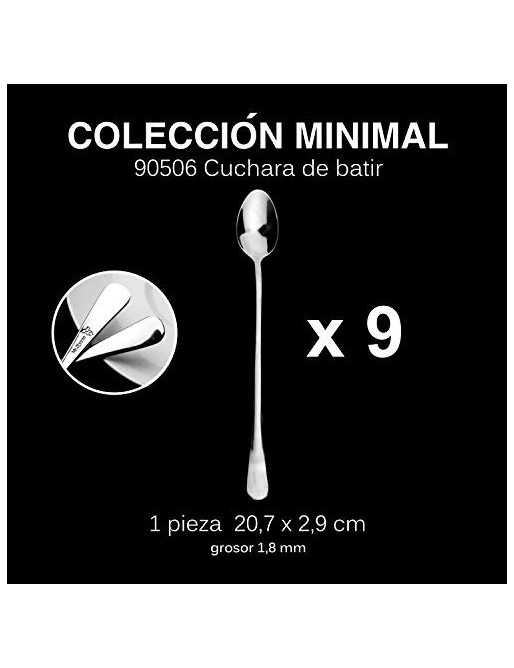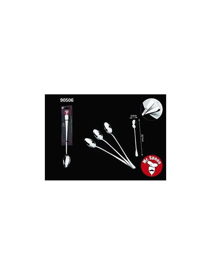 Mr. Spoon 9 Cucharas para Mezclar té Helado, café, cóctel, batido y Bebidas frías Acero INOX. 20,7 x 2,9 cm Colección Minima