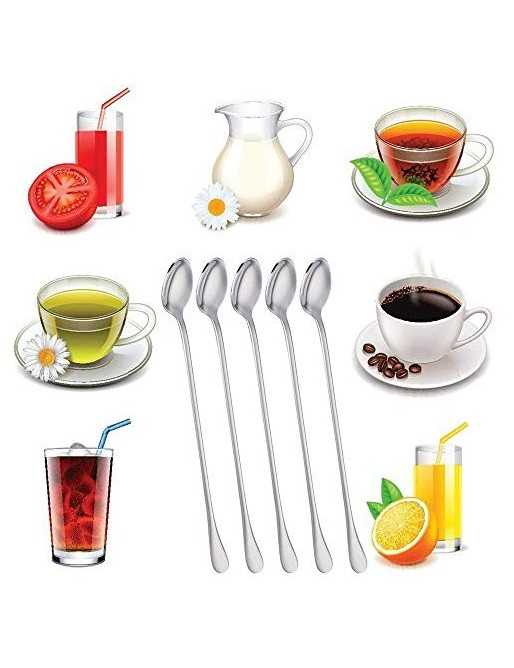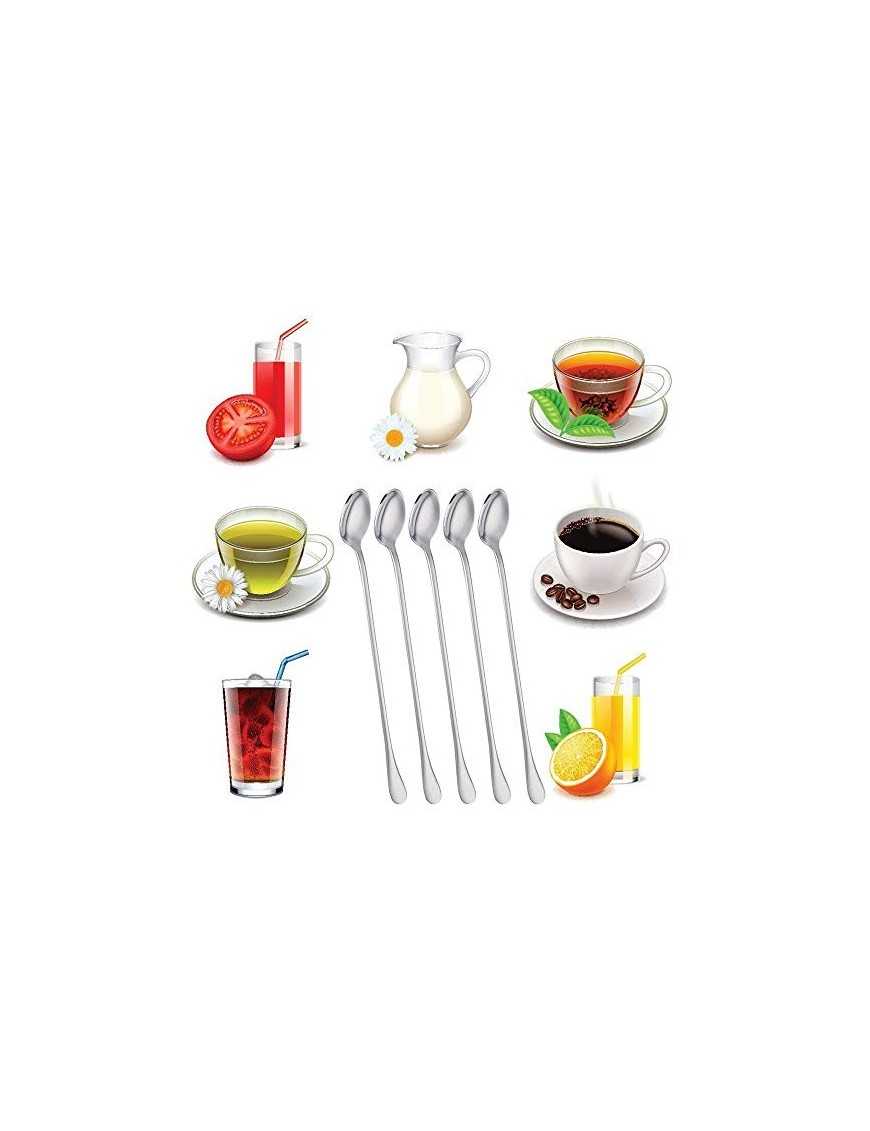 Multifunción: la cuchara de acero inoxidable de mango largo se puede utilizar como cuchara de helado, cuchara de agitar, cuchara de cóctel, etc.