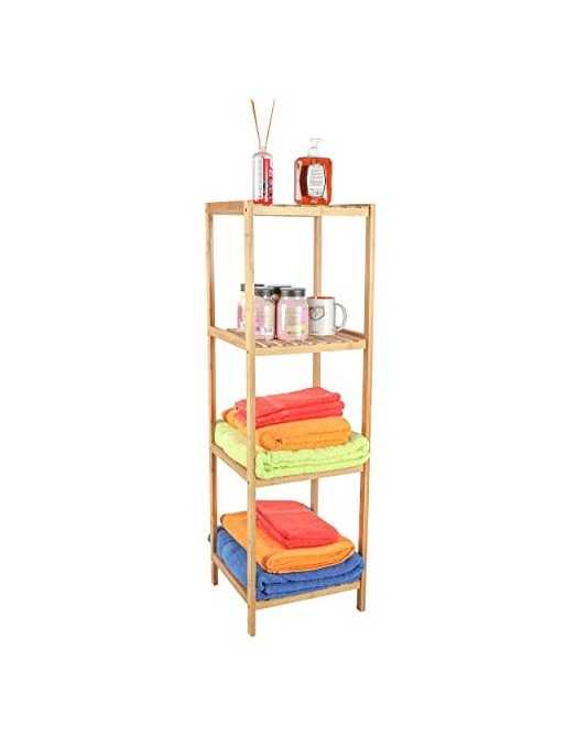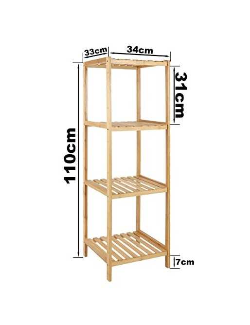 Estantería Bambú Estantería Baño de 4 Baldas Marrón Estante de Pie Decorativo 33x34x110cm