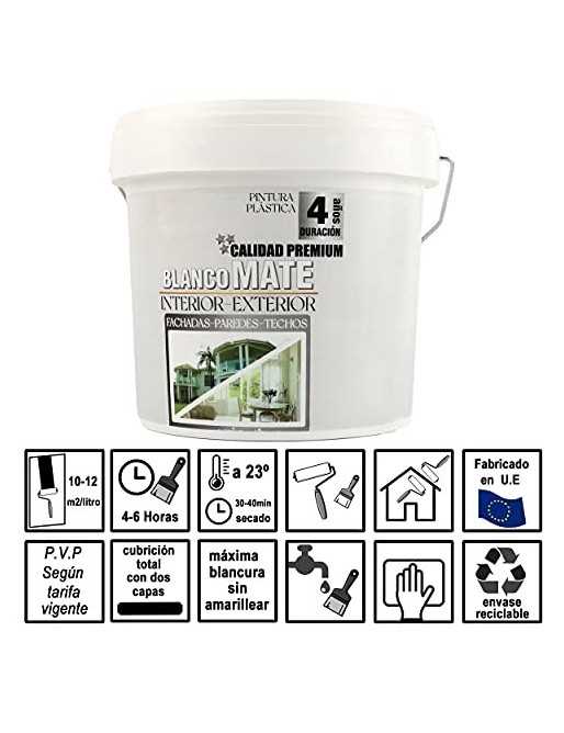 Pintura Plástica Premium Blanca Mate Interior-Exterior 15L/25Kg