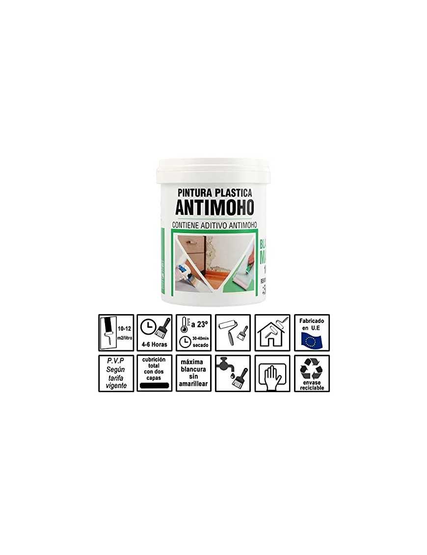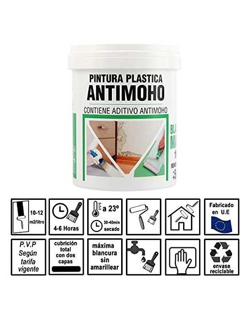 Pintura Plástica Antimoho Blanca Mate Resistente a la Aparición de Moho en Paredes - 1Kg