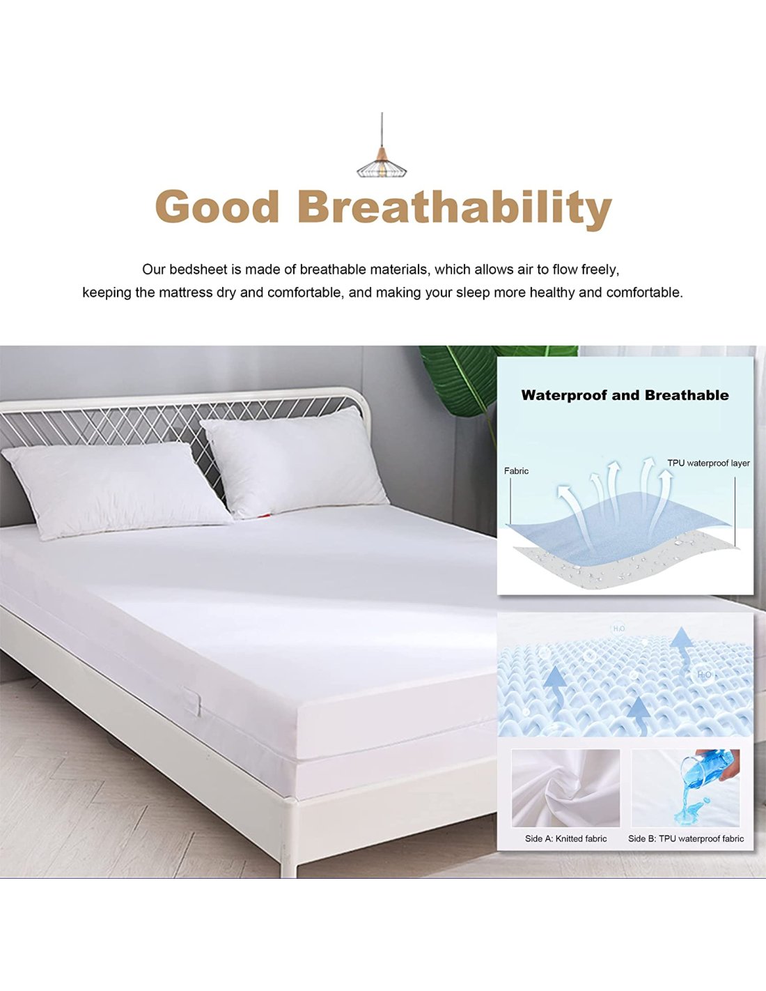 ✅ Protección completa: El protector de colchón de rizo con capa impermeable de TPU protege todo el colchón de manchas, ácaros del polvo, líquidos y otros daños.